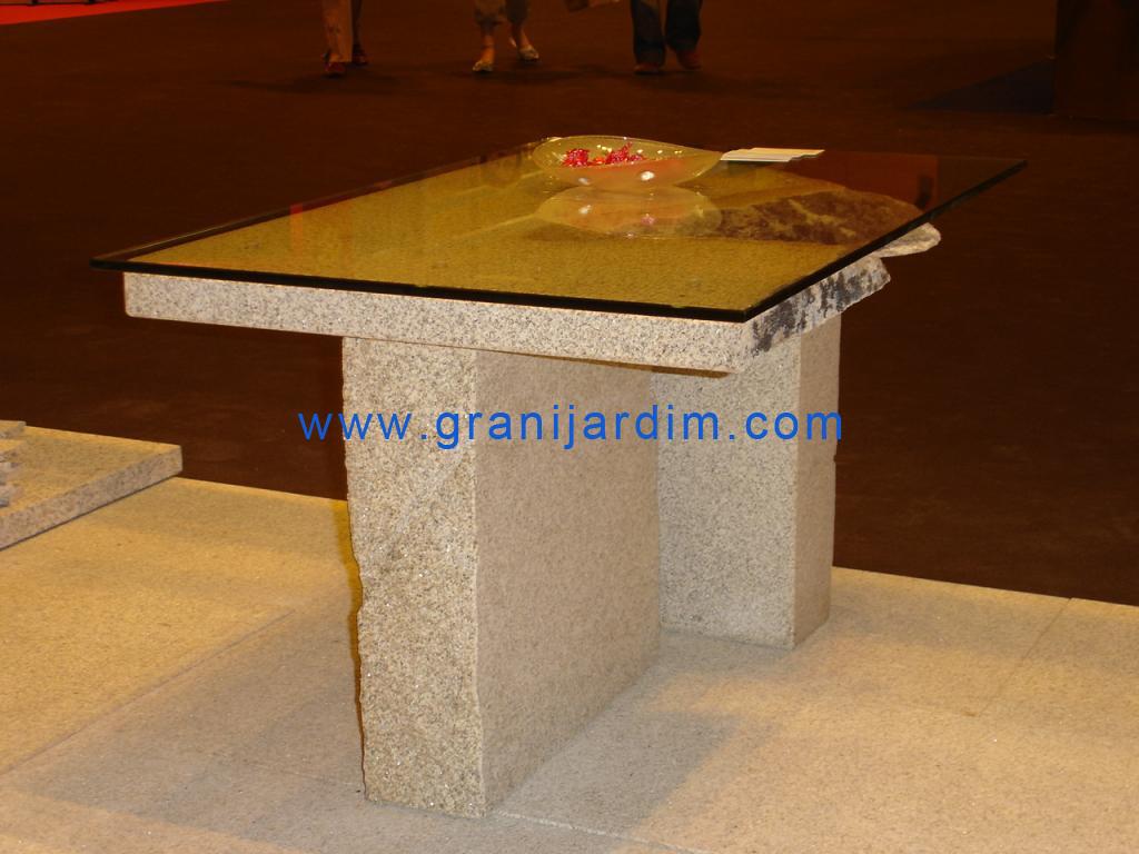 Decoração de interiores: Mesa de centro (Materiais: granito e vidro) (200)