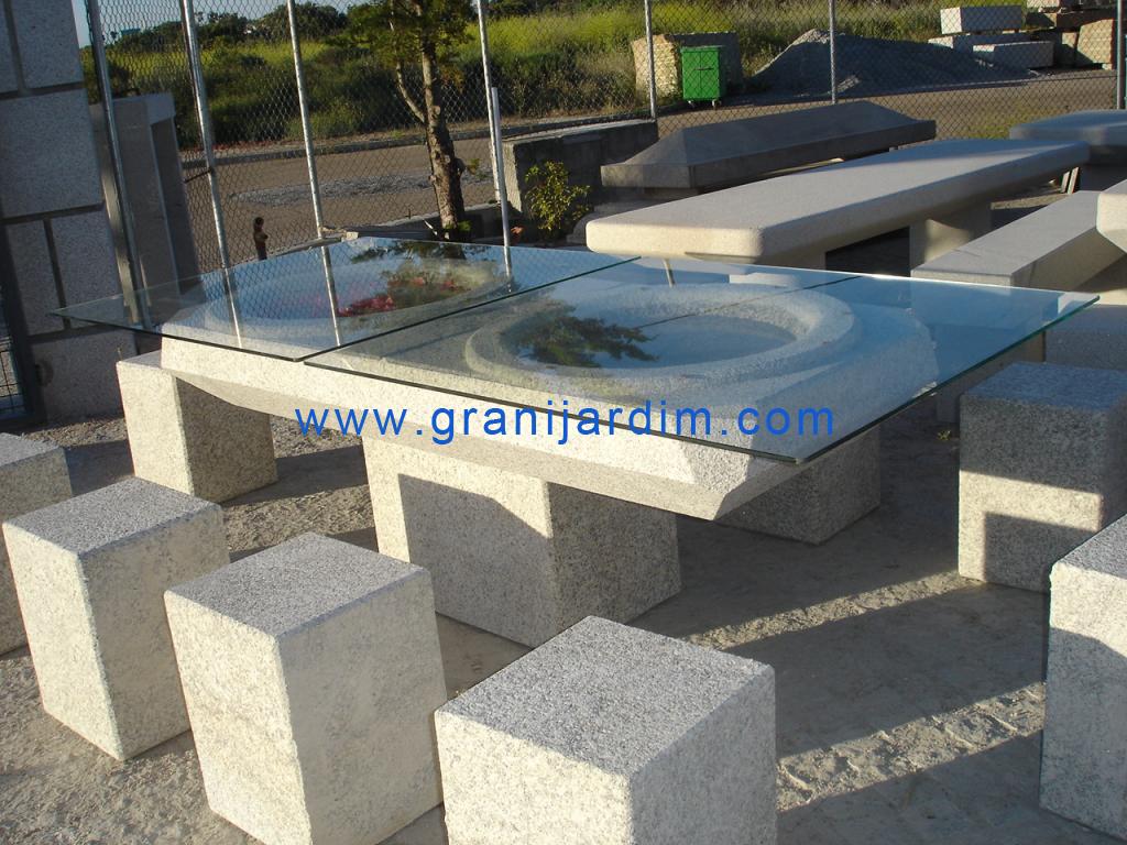 Jardins: Mesa em granito com tampo em vidro (325)