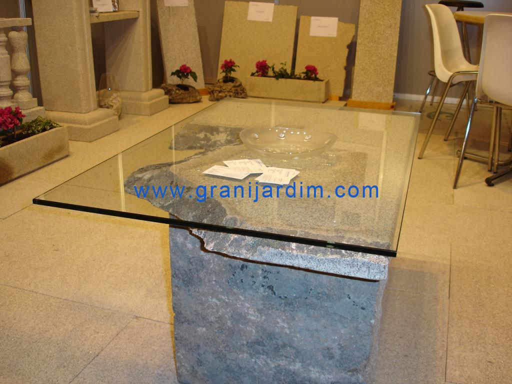 Decoração de interiores: Mesa de centro (Materiais: granito e vidro) (200)