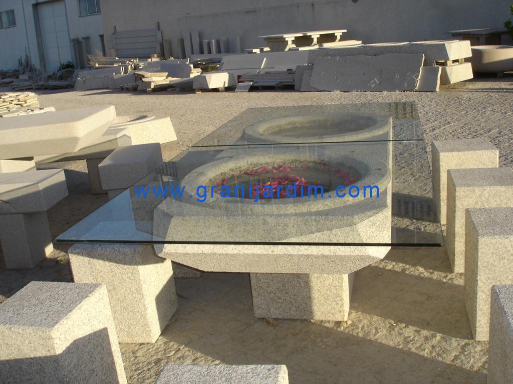 Jardins: Mesa em granito com tampo em vidro (325)